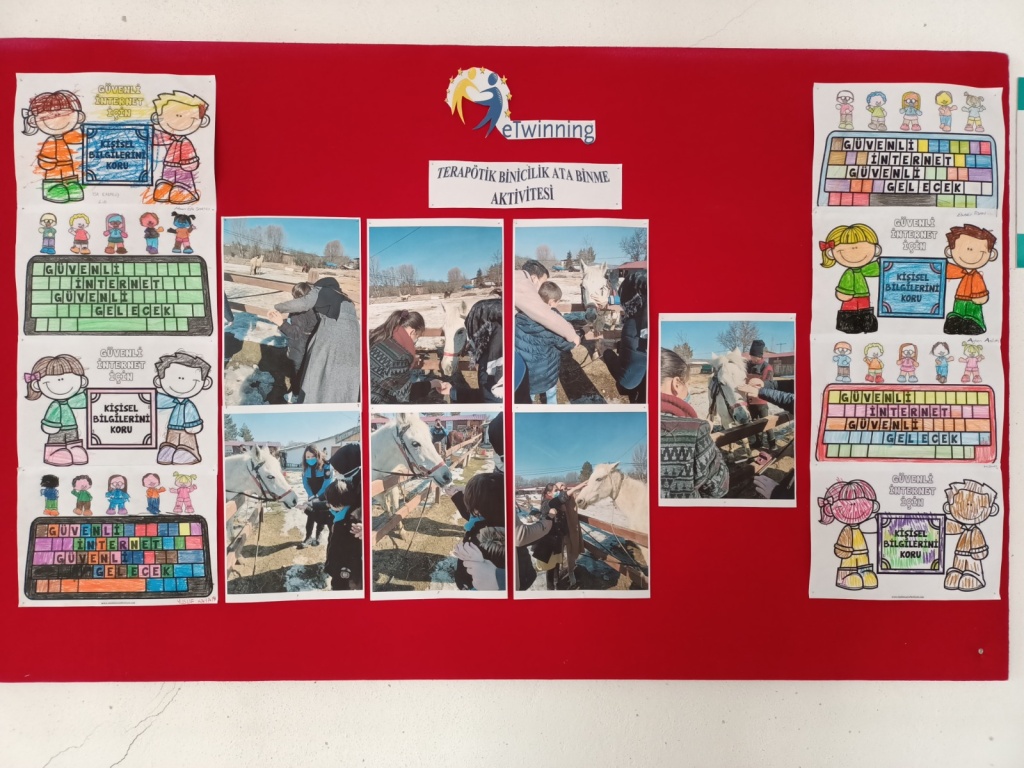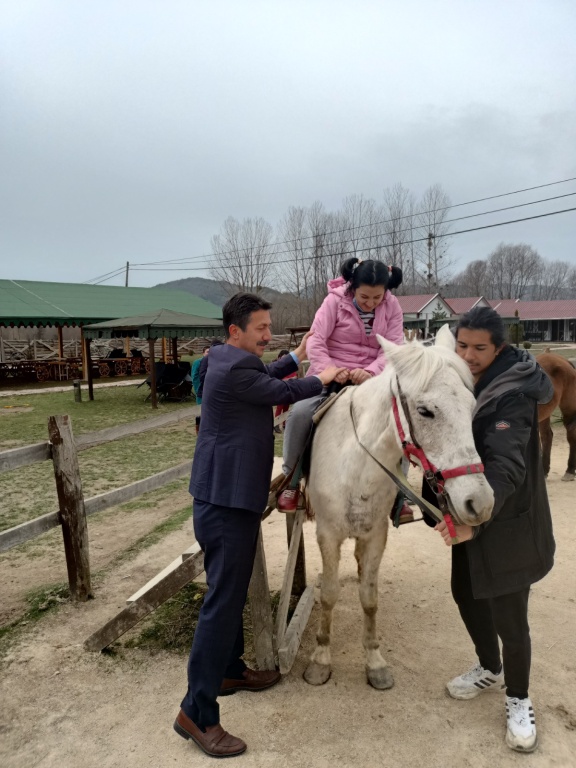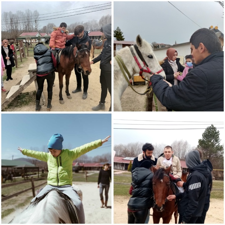 2021/2022 eğitim öğretim yılında okulumuz müdürü Vural YILMAZ, müdür yardımcısı Mihriban YAZICI ve Özel eğitim öğretmeni Hümeyra AKTAŞ YILDIZ ile Ankara Kahramankazan Fatih Ortaokulu'ndan 4 öğretmenin ortaklığı ile yürütülen "Terapötik Ata Binme Aktivitesi" isimli etwinning projesinin amacı çocuklarda terapötik ata binmenin yaşam kalitesi ve motor performans üzerine etkisini araştırmaktı. Bu amaçla okulumuz öğrencilerini 12 hafta ve haftada 1 saat terapötik binicilik eğitimine katılmalarını sağladık. Yaşam kalitesinin değerlendirilmesi ve kol uzanma hareketleri sırasındaki motor performans ölçümleri, terapötik binicilik antrenmanlarından bir gün önce ve bir gün sonra gerçekleştirildi. Projemizle özel gereksinimli bireylerin duyu motor tecrübelerini artırmak ve yaşam kalitelerini yükseltmeyi hedefledik.